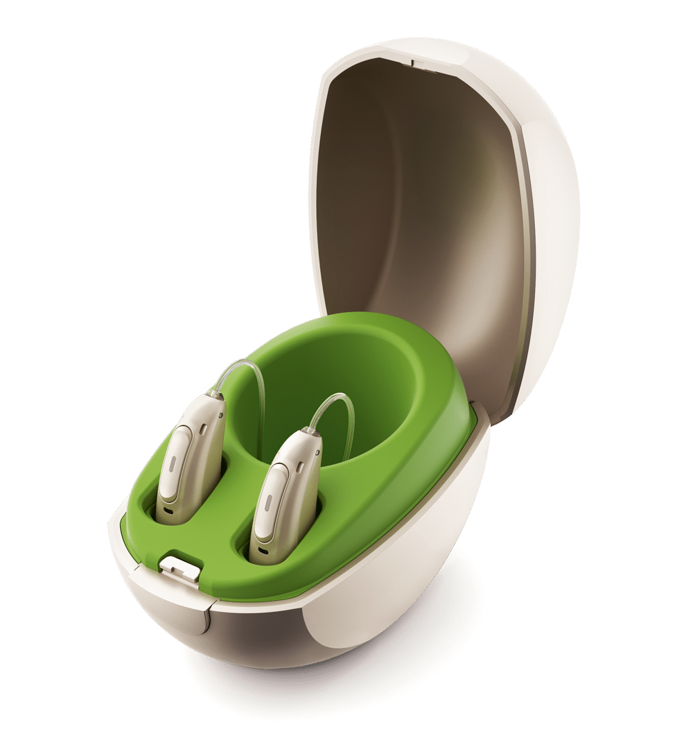 - Charging stations. For those with rechargeable hearing aids, a charging station is essential. Instead of having to fiddle with the battery compartments, users can simply place their hearing aids in the cradle for a few hours to get a full day’s worth of listening time.